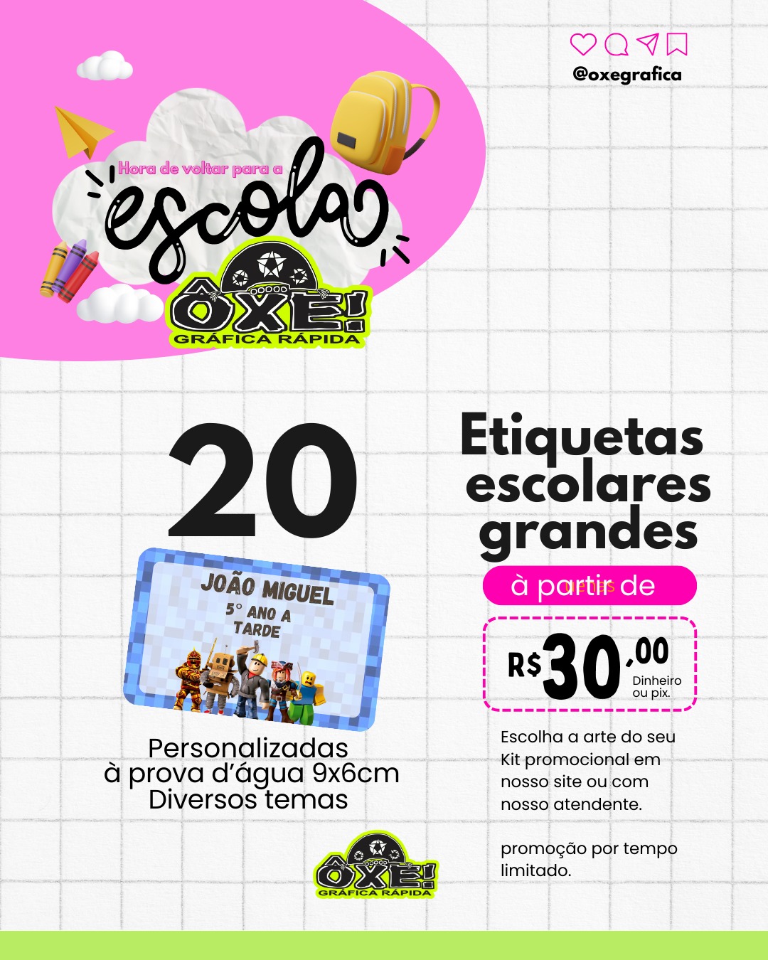 Balcões de RetiradaEtiquetas Escolares Grandes 20 unidades